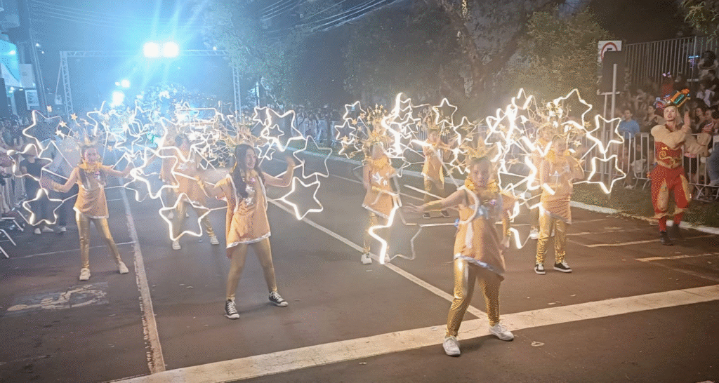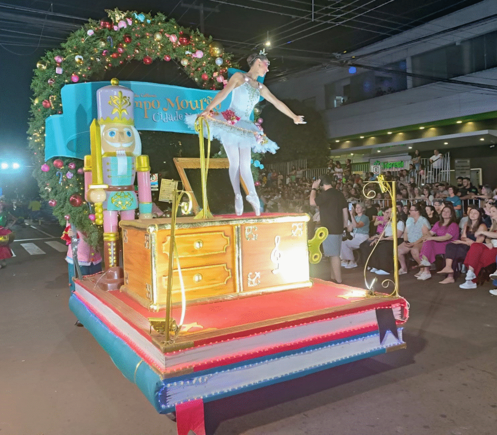 A passagem das alas coreografadas e carros alegóricos foi muito aplaudida pelo público e os artistas interagiram o tempo todo com a plateia, sobretudo com as crianças. Grupos artísticos de cidades da região, além de academias de dança de Campo Mourão e o Corpo de Dança da Academia Municipal de Balé, também participaram e o encerramento foi com a passagem do carro levando o Papai e a Mamãe Noel.