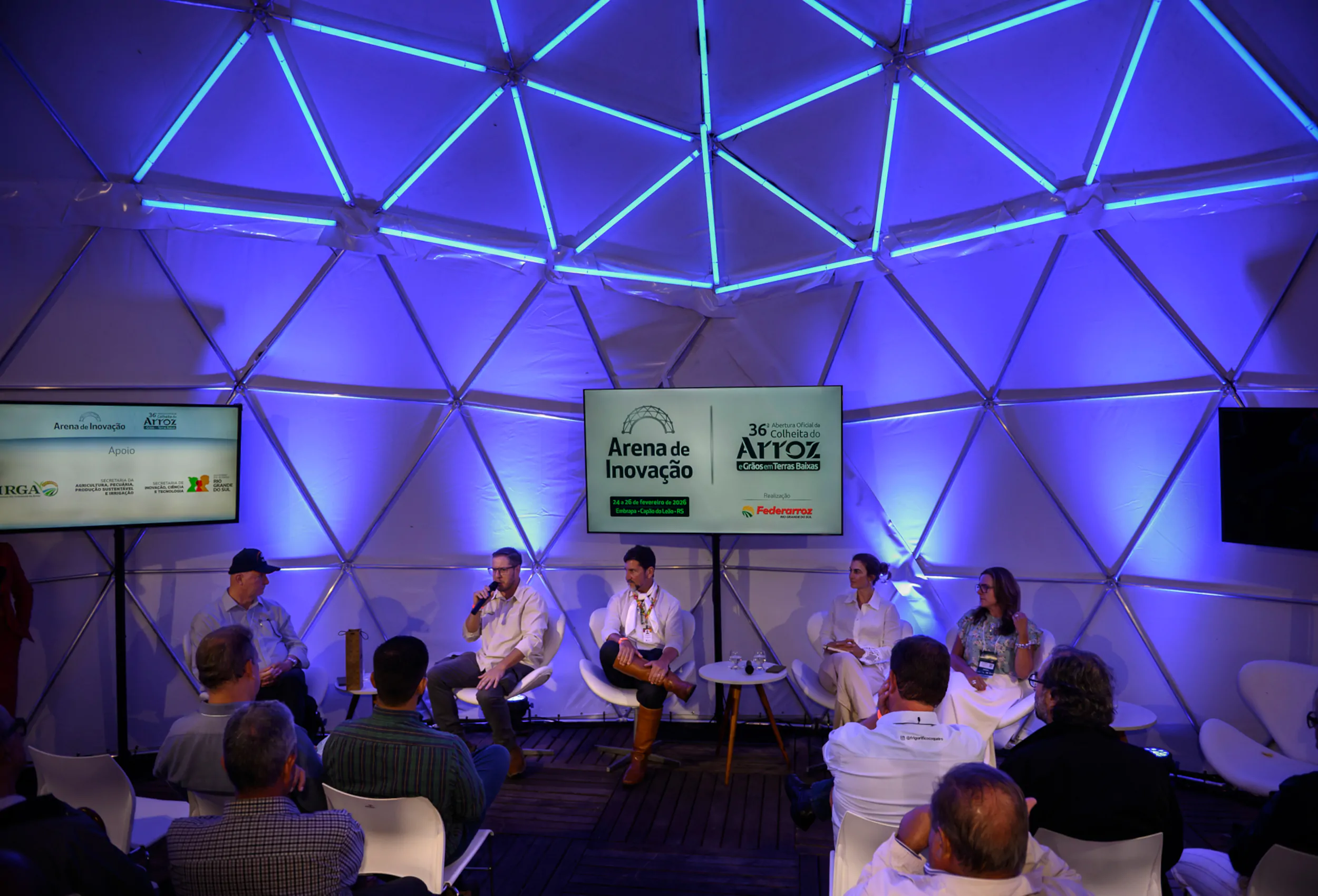 A diversificação no campo por meio da pecuária foi tema do painel “Lavoura de Carne: a nova pecuária do Brasil” na Arena de Inovação, na tarde desta terça-feira, 24, durante a 36ª Abertura Oficial da Colheita do Arroz e Grãos em Terras Baixas, na Embrapa Clima Temperado, em Capão do Leão (RS). O seminário abordou mercado, rastreabilidade, produtividade, sustentabilidade, padronização e bem-estar animal.